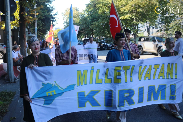 Kırım Türkleri Kültür ve Yardımlaşma Derneği Dans ve Müzik Topluluğu Cıyın Ansambli geleneksel Kırım Tatar kıyafetleri, bayraklar ve derneğin sağladığı pankartlar ile yürüyüş yaptı.