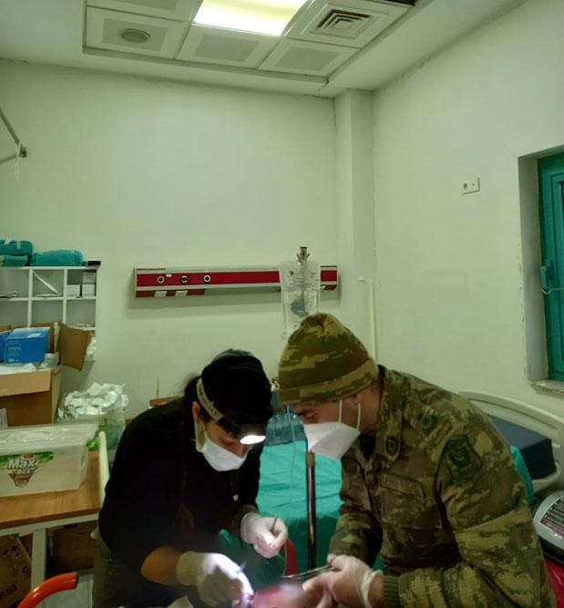 Azerbaycan ordusu askeri doktorları, Türkiye Cumhuriyeti Sağlık Bakanlığı ve Türk Silahlı Kuvvetleriyle birlikte Kahramanmaraş'ta depremzedelerin yaralarını sarıyor.