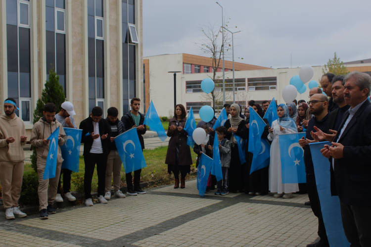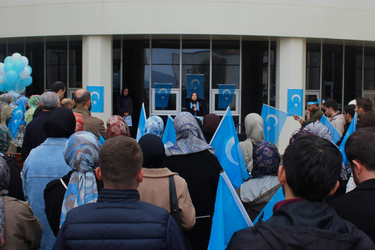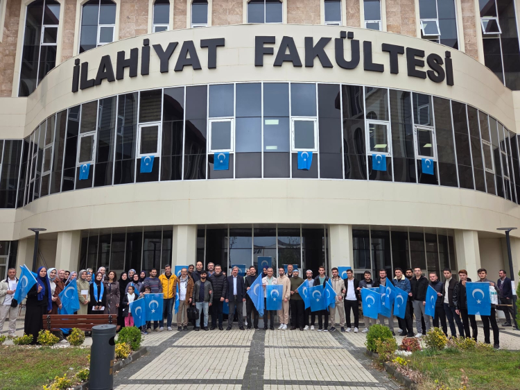 İlahiyat Fakültesi önünde Doğu Türkistan bayrakları ile tertip edilen programda, "Bir Tanığın Gözünden Doğu Türkistan" başlıklı sunum gerçekleştirildi. Etkinlik kapsamında annesi toplama kampında, babası hapishanede olan Hukuk Fakültesi 1. sınıf öğrencisi Uygur Türkü Mihriban, Doğu Türkistan millî marşını okudu.