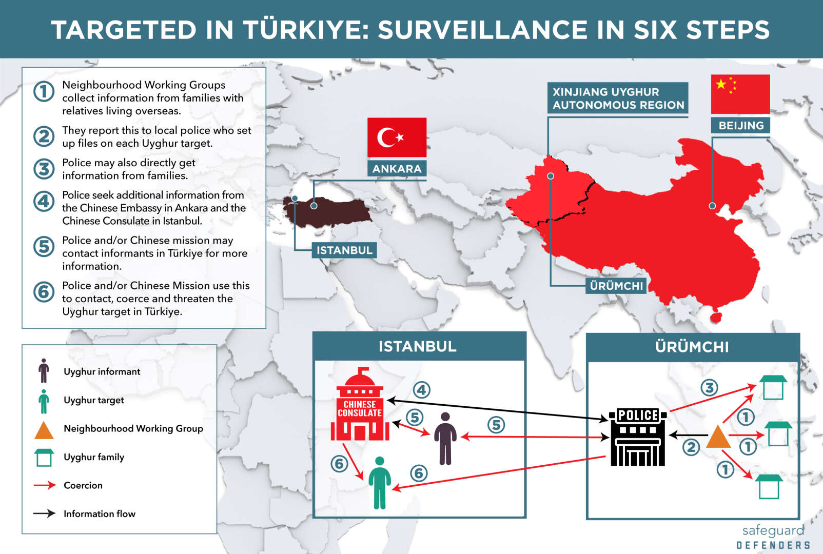 Çin'deki insan hakları ihlallerini araştıran İspanya merkezli insan hakları örgütü Safeguard Defenders, Çin yönetiminin, Türkiye'de yaşayan Uygur Türklerine yerel Uygur diasporasını gözetlemeleri için giderek daha fazla baskı yaptığını ortaya çıkaran yeni raporu paylaştı.
