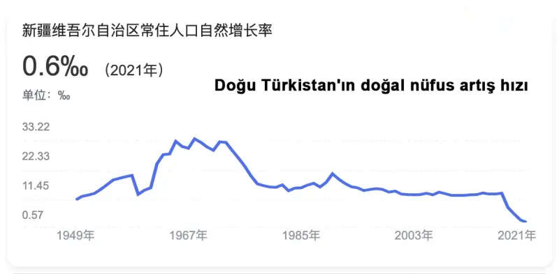 Doğal nüfus oranındaki bu düşüş, Çin’in Doğu Türkistan’da insanların toplama kamplarına alınması başta olmak üzere soykırım politikasına hız vermeye başladığı dönemin hemen ardından geliyor. 2016'dan beri nüfus artışı hızının azaldığı Çin'de hükumet, 1980'lerden itibaren uygulanan Uygur Türkleri başta olmak üzere diğer etnik milletlere "tek çocuk" politikası uygulanmıştı.