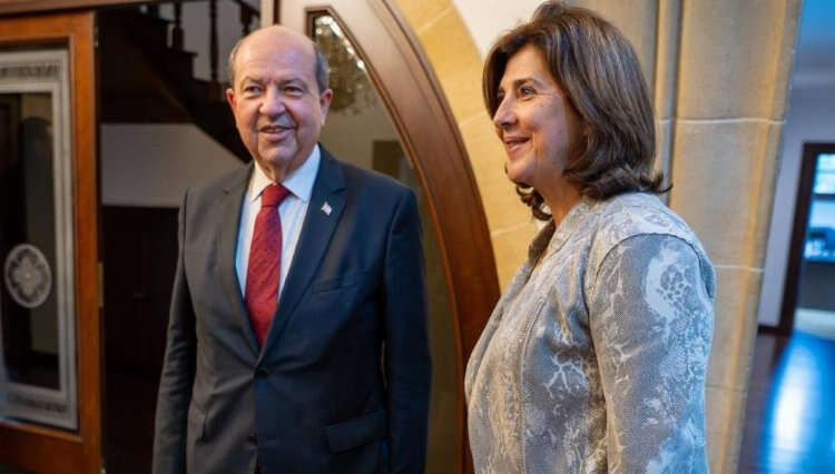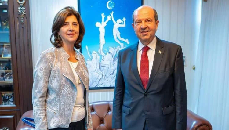 KKTC Cumhurbaşkanı Ersin Tatar, Birleşmiş Milletler Genel Sekreteri’nin Kişisel Temsilcisi Maria Angela Holguin Cuellar’ı ikinci kez kabul etti.