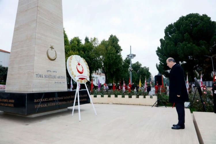 Cumhurbaşkanı Tatar, Lefkoşa Şehitler Anıtı önündeki törende Anıt Özel Defteri'ni imzalayarak, deftere yazdığı mesajında; "Kahraman Kıbrıs Türk halkının bu topraklarda başı dik, onurlu bir halk olarak yaşayabilmesi ve kendi vatanına sahip olması için Mehmetçik ile birlikte yapılabilecek fedakarlıkların en büyüğünü yaparak canlarınızı verdiniz." ifadelerine yer verdi.