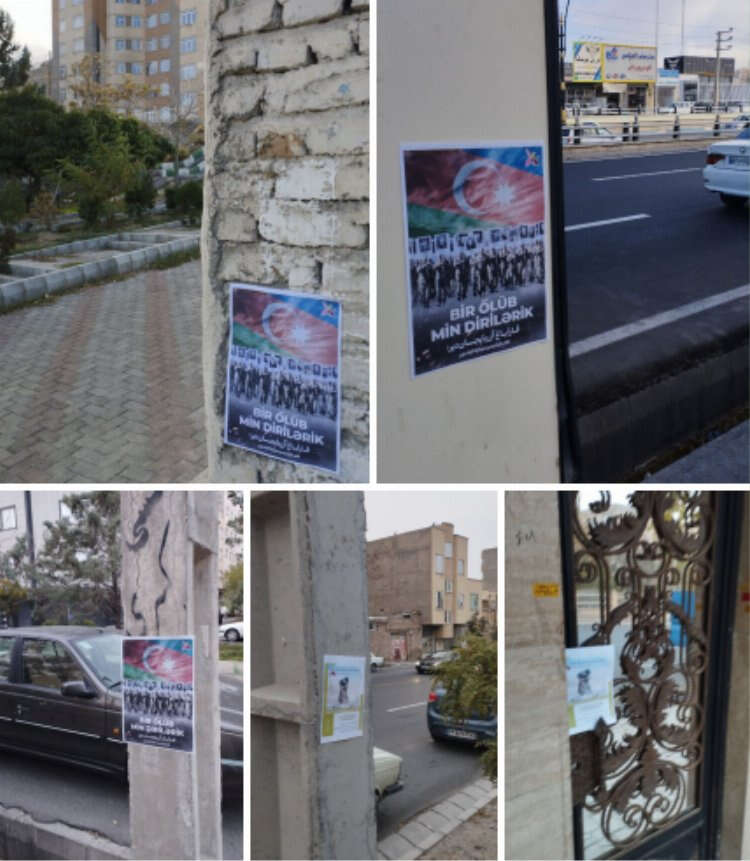 Güney Azerbaycan'da bir grup aktivist, 8 Kasım Karabağ Zafer Bayramı münasebetiyle Tebriz sokaklarına poster astı.