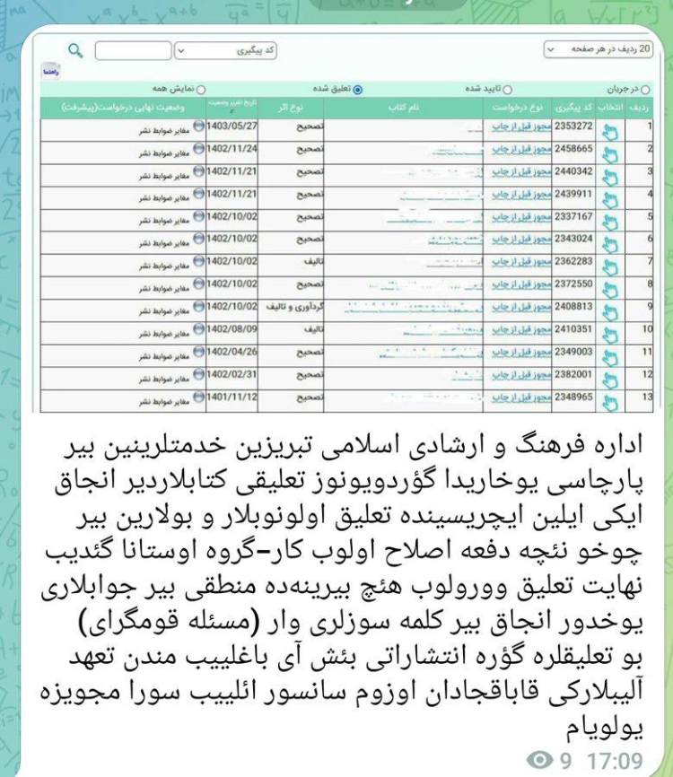 Yayınevinin düzeltmeler yapılmasına rağmen bazı kitapların iki yıldan uzun süredir basım ve yayım izni beklediğini belirttiği açıklamasında; özellikle Azerbaycan Türkçesi ile yazılmış kitapların, Bakanlık tarafından uygulanan katı sansür ve "milliyetçilik" gerekçesiyle neredeyse tamamen durma noktasına geldiği kaydedildi.