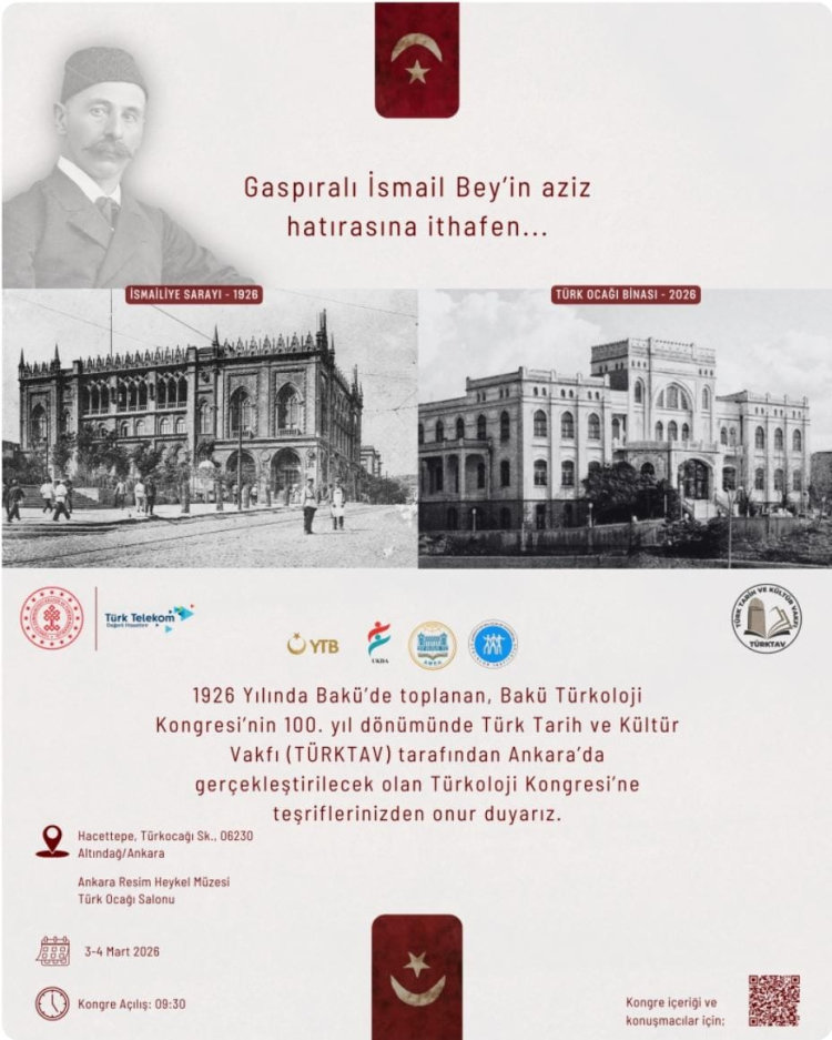 Bakü Türkoloji Kongresi’nin 100. yıl dönümü dolayısıyla Türk Tarih ve Kültür Vakfı tarafından Ankara’da İsmail Bey Gaspıralı'ya ithafen Türkoloji Kongresi düzenlenecek.