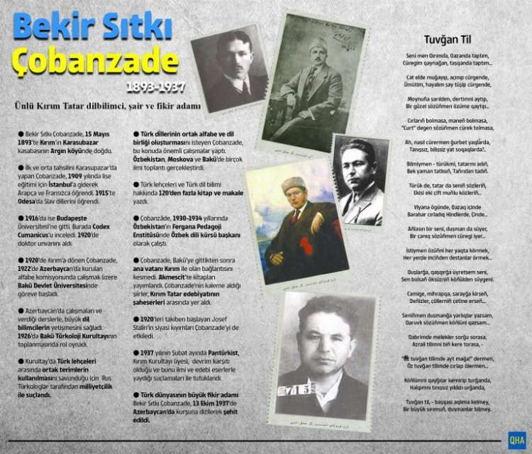 Ünlü Kırım Tatar dilbilimci, şair ve yazar Bekir Sıtkı Çobanzade, başta Kırım Tatar halkı olmak üzere Türk dünyasının kalbinde yaşıyor. 13 Ekim 1937’de Sovyet yönetimince Azerbaycan’da kurşuna dizilmek suretiyle şehit edilen Çobanzade, eserleri, çalışmaları ve fikirleriyle unutulmuyor. Kırım Tatarı ünlü dilbilimci, şair ve yazar Bekir Sıtkı Çobanzade, 25 Aralık 1893 yılında dünyaya geldi.