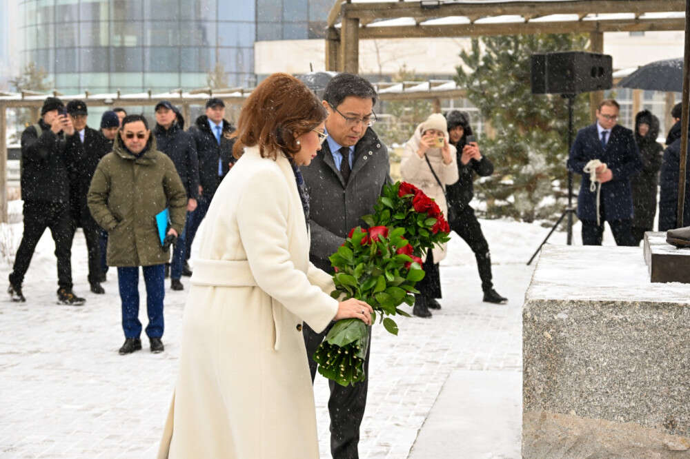 Açılışın ardından Bakan Balayeva anıta çiçek bıraktı. 3 metre yüksekliğinde, bronzdan yapılan eserin yapımını üstlenen heykeltraşlar, Aidos Burkitbayev ve Timur Ermukametov takdir edildi.
