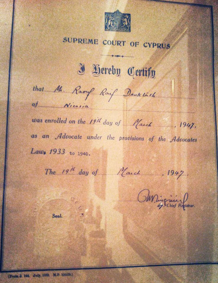 1944’de British Council’dan burslu olarak İngiltere'de hukuk tahsili yapmış ve 1947 yılında Lincoln's Inn'den mezun olmuştur. Aynı yıl Kıbrıs'a dönüp avukatlığa başlamıştır.