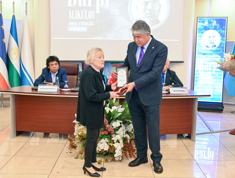 Kırgızistan'ın Ankara Büyükelçiliği ile ortaklaşa düzenlenen program çerçevesinde TÜRKSOY Genel Sekreteri Sultan Raev, Tarihi Araştırmalar ve Dokümantasyon Merkezleri Kurma ve Geliştirme Vakfı ve Ayaz Tahir Türkistan İdil Ural Vakfı Başkanı, Celal Bayar Vakfı Yönetim Kurulu Üyesi Prof. Dr. Tülay Duran'a madalya takdim etti.