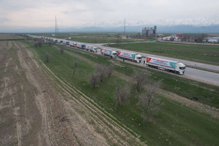 Bakan Ajikeyev, burada yaptığı konuşmada, Bakanlık tarafından hazırlanan insani yardımları götürecek tır sürücülerine iyi yolculuklar diledi.