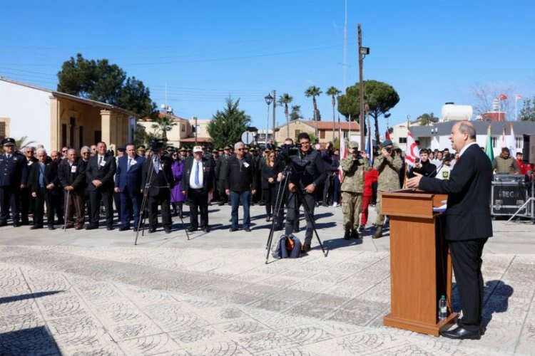Cumhurbaşkanı Tatar, törende yaptığı konuşmada bugün KKTC olarak Doğu Akdeniz’de bağımsız bir Türk devletine sahip olmayı ve burada özgürlük ve güven içerisinde yaşamayı, şehitlere ve verilen soylu mücadeleye borçlu olduklarını belirtti.