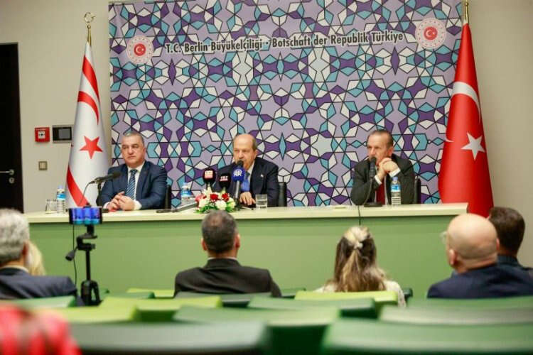 Ersin Tatar, Türkiye'nin Berlin Büyükelçiliğinde düzenlenen basın toplantısında, "Anlaşma niyetimiz 'evet', ama eşitlik temelinde. Kıbrıs Türk'ünün egemenliği fevkalade önemli." şeklinde konuştu.