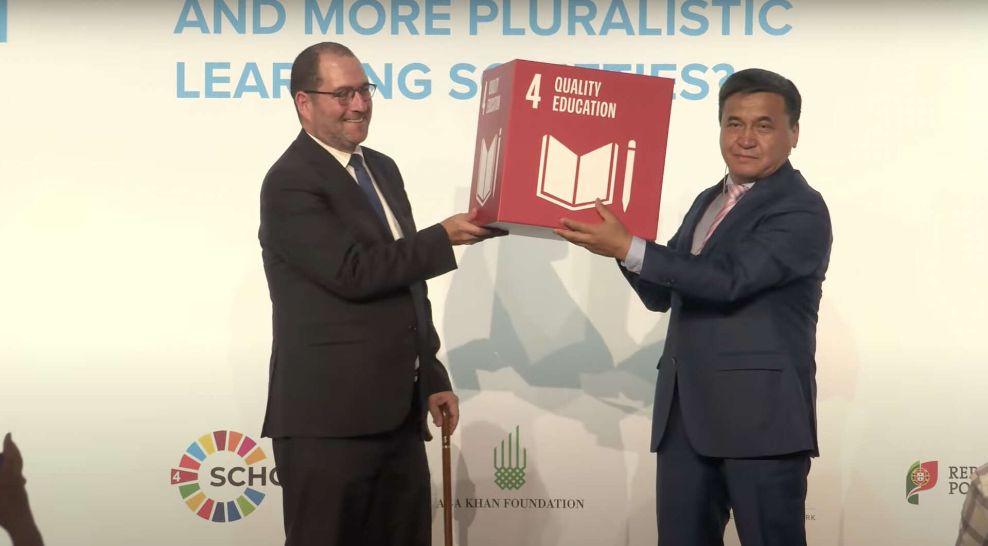 Kırgızistan Eğitim ve Bilim Bakanı Kanibek Imanaliyev forumda, "Okullar2030 Küresel Forum"u bayrağını Portekiz Cumhuriyeti Eğitim Bakanı Joao Costa'dan aldı.