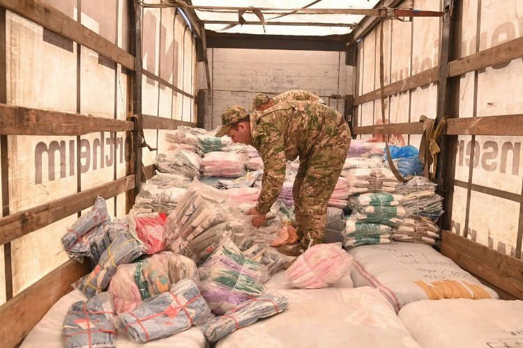Aripov öte yandan gıda, kadınlar, erkekler ve çocuklar için kıyafetler, örtüler, hijyenik malzemeleri, çadırlar, şişme botlar ve diğer temel ihtiyaç malzemelerin içinde bulunduğu tır sürücülerine iyi yolculuklar diledi.