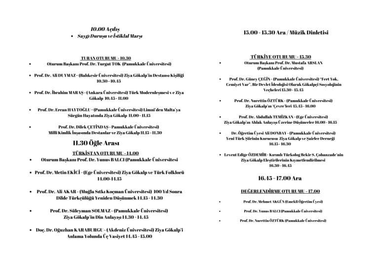 Pamukkale Üniversitesi Türk Dili ve Edebiyatı Bölümü, “Vefatının 100. Yılında Ziya Gökalp Sempozyumu” adlı sempozyuma ev sahipliği yapacak. Türkiye'nin çeşitli üniversitelerinden alanın uzmanı olan akademisyenler, 13 Aralık 2024 tarihinde Ziya Gökalp’i anlatacak.