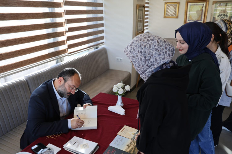 Kılınç, söyleşinin ardından TDV Kitap Kahve’de okuyucuları için kitaplarını imzaladı.