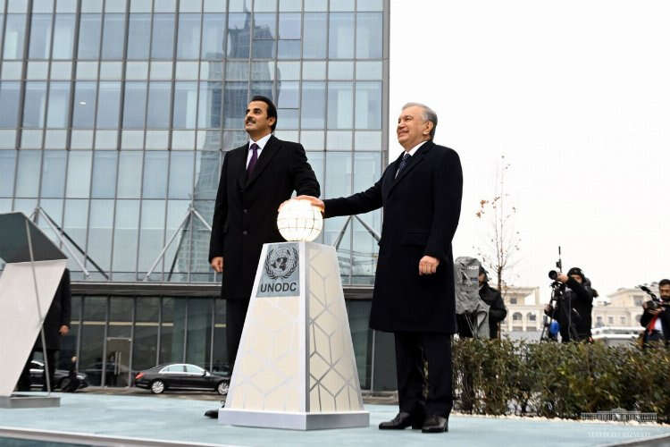 Özbekistan Cumhurbaşkanı Şevket Mirziyoyev ve Katar Emiri Şeyh Tamim bin Hamad Al Thani'nin katılımıyla Taşkent'te yolsuzlukla mücadeleyi temsil eden anıt açıldı.