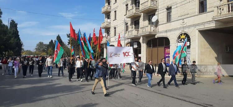 Azerbaycan'ın Gence şehrinde Türkiye Cumhuriyeti'nin kuruluşunun 100'üncü yılı nedeniyle yürüyüş korteji düzenlendi.