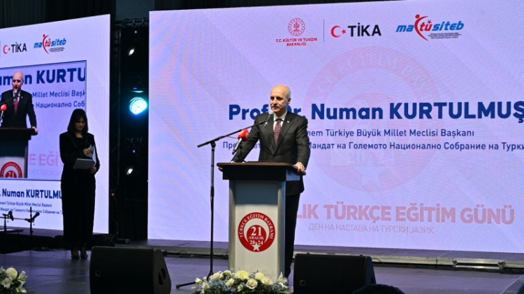 Konuşmasında Türk Dil Bayramı'nın, Kuzey Makedonya topraklarında kıyamete kadar devam etmesi temennisinde bulunan TBMM Başkanı Prof. Dr. Numan Kurtulmuş, “Dil, insanın kendini ifade etmesidir. Dil, aslında insanın düşünce dünyasının ete, kemiğe bürünmesidir. Dil, insanın gönlünün dışa vurumudur. Bu çerçevede Türk dili, sadece bir lisan olmanın ötesinde, asırlar boyu biriktirdiğimiz kültürel birikimin de bugün kendi aramızda konuştuğumuz bir haberleşme vasıtasıdır” dedi.