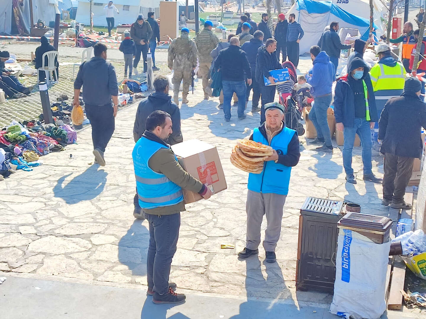 Deprem bölgelerinde yardım çalışmalarına devam eden Uygur Türkleri, afetzedelere Uygur ekmeği (nan) ve Türkistan pilavı ikram ediyor.