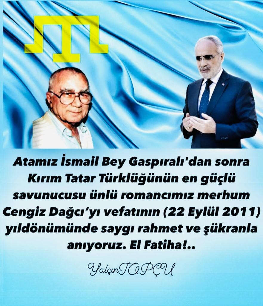 Milyonlarca Kırım Tatarının anavatanları Kırım’a duyduğu özlemi, eserleriyle dile getirerek hafızalara kazınan ünlü Kırım Tatarı yazar Cengiz Dağcı’yı rahmet, minnet ve saygıyla anıyoruz…