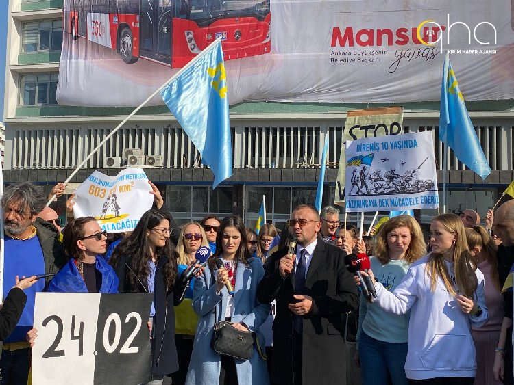 Ukrayna'nın Ankara Büyükelçiliği, Ankara Ukrayna Derneği ve Kırım Türkleri Kültür ve Yardımlaşma Derneği birlikteliğiyle, Ankara’da Rusya’nın Ukrayna’ya yönelik başlattığı topyekûn işgal girişiminin 2. yılında basın açıklaması gerçekleştirdi.