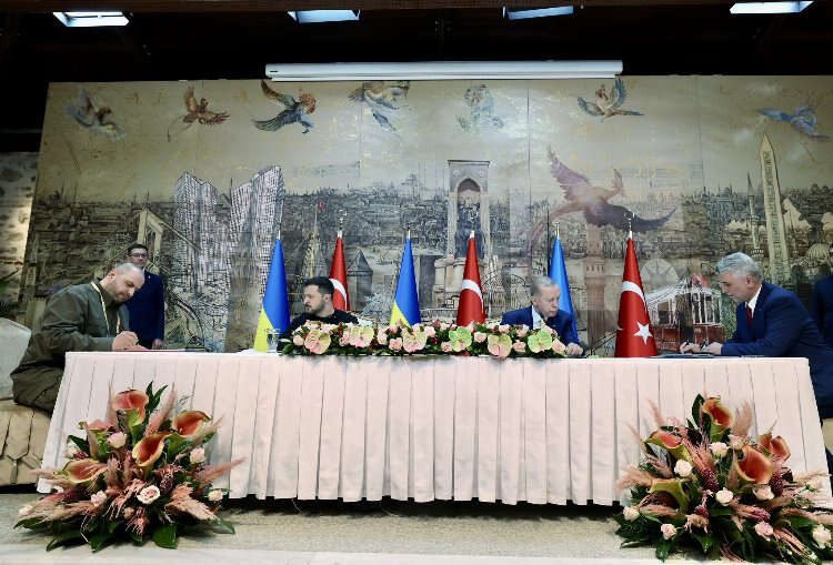 Türkiye Cumhurbaşkanı Erdoğan ile Ukrayna Cumhurbaşkanı Volodımır Zelenskıy İstanbul'da bir araya geldi. İki liderin, 8 Mart 2024 tarihinde gerçekleştirdiği görüşme çerçevesinde Türkiye ile Ukrayna arasında “Eşya ve Ulaşım Araçlarına Dair Elektronik Bilgi Paylaşım Sistemi Kurulmasına İlişkin Anlaşma” imzalandı.