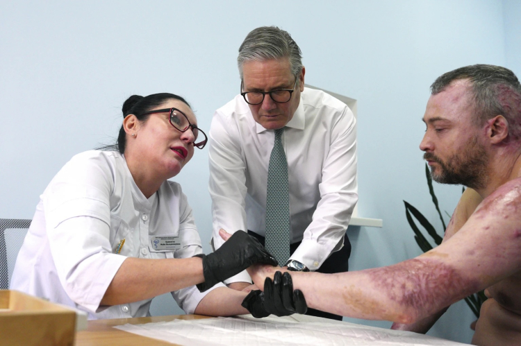 Starmer sonrasında yanık alanında uzmanlaşmış bir Kıyiv hastanesini ziyaret etti ve tedavi gören hastalarla görüştü.