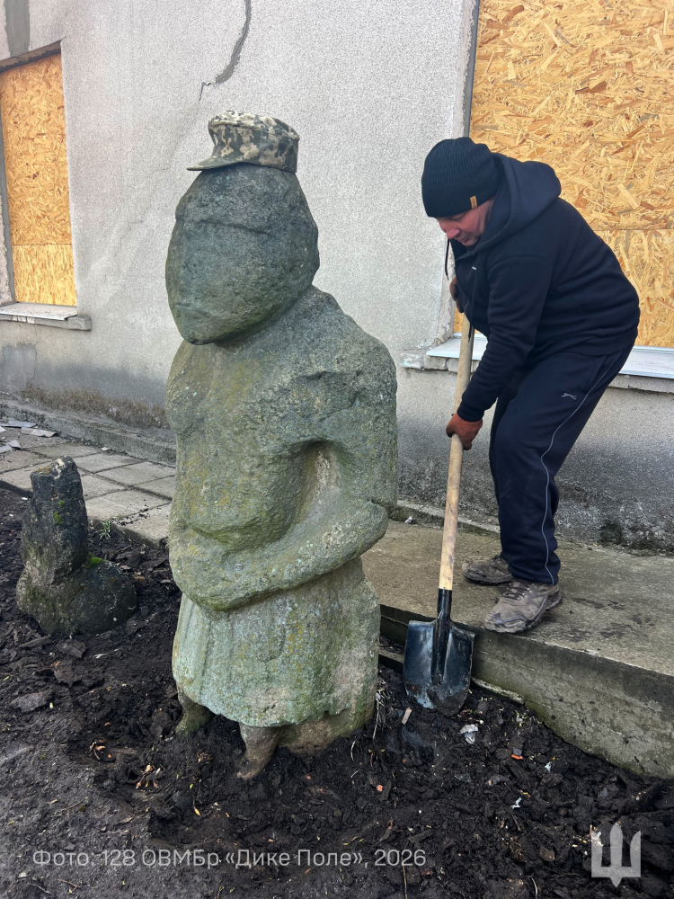 Bu taş figürleri çıkarmak için küreklerle epey ter döktük; içlerinden biri oldukça büyüktü. Eserlerin tarihi değerine zarar vermemek adına Zaporijjyalı ünlü tarihçi Petro Boyko da operasyona dahil oldu. Tüm tarihi değer kabul kurallarına uyularak kayıt altına alındı."