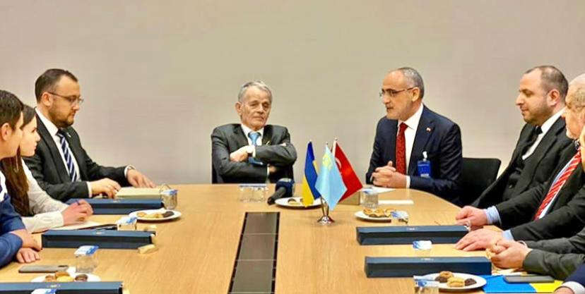 (Türkiye Cumhurbaşkanlığı Külliyesi'nde Cumhurbaşkanı Başdanışmanı Yalçın Topçu, Kırım Tatarlarının milli lideri, Ukrayna Milletvekili Mustafa Abdülcemil Kırımoğlu ve Rüstem Umerov)