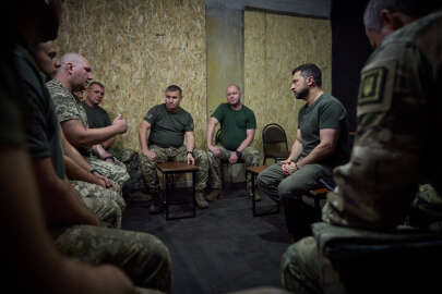 Ukrayna Cumhurbaşkanı Volodımır Zelenskıy, Zaporijjya bölgesindeki cepheyi ziyaret ederek askerlerle bir araya geldi.