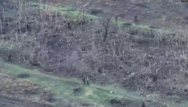 Radio Svoboda haber ajansı tarafından yayımlanan videoda, Rus askerlerinin esir aldıkları Ukrayna askerlerinin arkasında saklanarak Ukrayna mevzilerine doğru ilerleyerek ateş açtığını görünüyor. Haber ajansın yayımladığı videonun Ukrayna ordusuna ait insansız hava aracı ile çekildiğini aktarıldı.