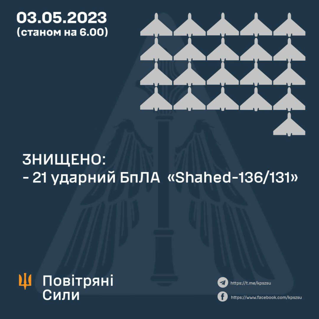 Ukrayna Hava Kuvvetlerinden yapılan açıklamada, “Gece saatlerinde işgalciler 26 Şahid -136/131 SİHA kullandı. Ukrayna Silahlı Kuvvetleri birlikleri 21 SİHA imha etti.” denildi.