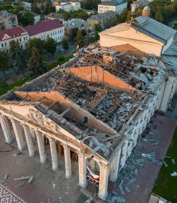 İşgalci Rus askerlerinin 30 Ekim 2023 tarihinde yaptığı bombardıman sonucunda Herson Bölge Bilim Kütüphanesi büyük zarar gördü.