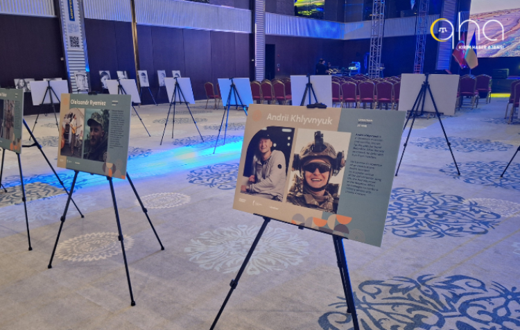Üç yıldan beri bu günü tam ölçekli savaş ortamında kutluyoruz. Üç yıldan beri cepheden gelen haberleri okuya okuya uyuyup uyanıyoruz. Fakat mücadeleye devam ediyoruz. Örneğin, bu salondaki stantlarda gördüğünüz resim ve metinler... Bunlar, sıradan insanlardır. Savaştan önce opera sanatçısı, yazar, televizyon spikeri, aktör, yönetmen, fotoğrafçıydılar. Savaş kaderlerini değiştirdi. Sanatı bırakıp ellerine silah almak zorunda kaldılar.