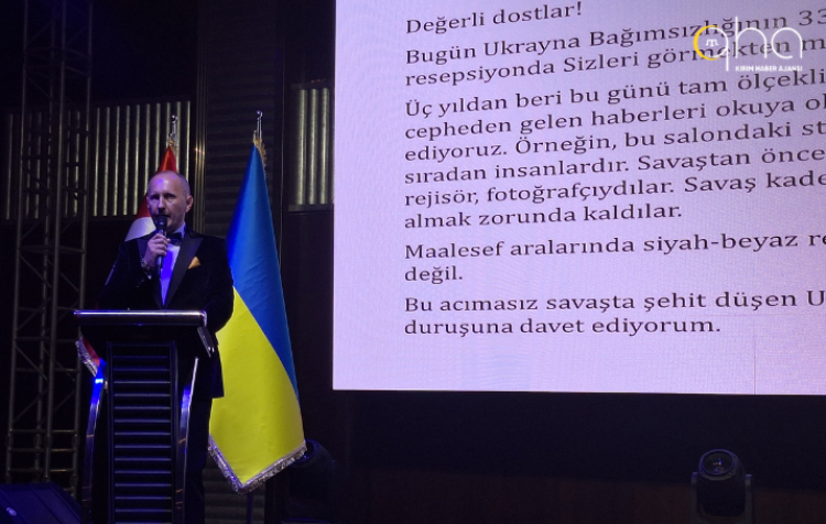 Ukrayna'nın bağımsızlığının 33. yılının kutlandığı resepsiyona; Türk dünyasının yaşayan efsanesi, Kırım Tatar halkının milli lideri ve Ukrayna Milletvekili Mustafa Abdülcemil Kırımoğlu'nun eşi Safinar Cemileva, Kırım Tatar Milli Meclisi (KTMM) üyeleri Gülnara Bekirova ve Abmecit Süleymanov, Kırım Derneği İstanbul Şube Başkanı Celal İçten, Kırım Derneği İstanbul Anadolu Yakası Şube Başkanı Şebnem Sözen, Kırım Derneği Gebze Şubesi Başkanı Nermin Ekim, Türkiye Ukrayna Romanya Kırım Sanayici İş İnsanları Derneği (TURKSİD) Başkanı Erhan Baştuhan, İstanbul’daki Ukrayna Dayanışma Derneği Başkanı Tetiana Fecan-Baştepe, Ukrayna Kültür Derneği Başkanı Munavar Useinova, Ukrayna'nın Bursa Fahri Konsolosu Görkem Şehsuvar, Tekirdağ Fahri Konsolosu Bilal Ahmadov, Çanakkale Fahri Konsolosu Mehmet Işık ve çok sayıda davetli katıldı.