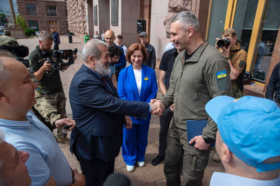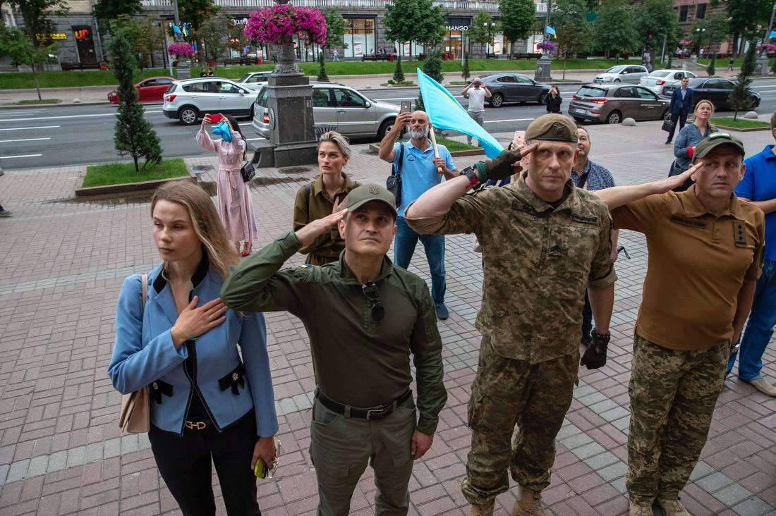 Kıyiv Belediye Başkanı Vitaliy Klıçko, Kırım Tatar Milli Meclisi (KTMM) Başkanı Refat Çubarov ve Kırım Tatar halkının temsilcilerinin katılımıyla Kıyiv Belediyesi ve Kıyiv Valiliği binaları önünde Kırım Tatar bayrağını göndere çekme töreni gerçekleştirildi.