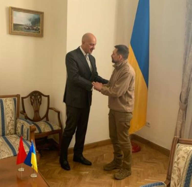 Türkiye'nin Kıyiv Büyükelçisi Mustafa Levent Bilgen nezaket ziyaretleri kapsamında Ukrayna Dijital Dönüşümden Sorumlu Dışişleri Bakan Yardımcısı Anton Demyohin ve Dışişleri Bakan Yardımcısı Mıkola Toçıtskıy ile bir araya geldi.