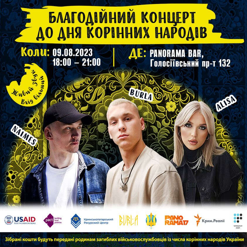 Kırım Tatar Kaynak Merkezi Müdürü Zarema Bariyeva, Ukrayna'nın başkenti Kıyiv'deki Panorama Bar'da 9 Ağustos 2023 tarihinde Uluslararası Yerli Halklar Günü'ne özel bir yardım konseri düzenleneceğini duyurdu.