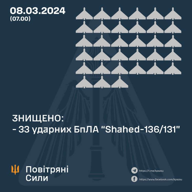 Ukrayna Hava Kuvvetleri tarafından yapılan açıklamada, işgalci Rus ordusunun gece saldırısında 37 adet Şahed 136/131 tipi SİHA, 2 adet Kh-59 tipi güdümlü füze ve bir S-300 tipi füze kullandığı aktarıldı. Ayrıca Ukrayna ordusunun farklı birimleri tarafından gece boyunca, Kirovograd, Odesa, Herson, Mıkolayiv, Harkiv bölgelerinde toplamda 33 düşman SİHA’nın düşürüldüğü ifade edildi.