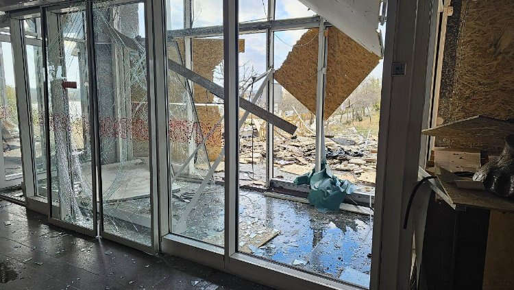 İşgalci Rusya'nın hava saldırıları nedeniyle bu sabah Ukrayna'nın Herson bölgesindeki Gonçar Evrensel Bilim Kütüphanesi ağır hasar aldı.