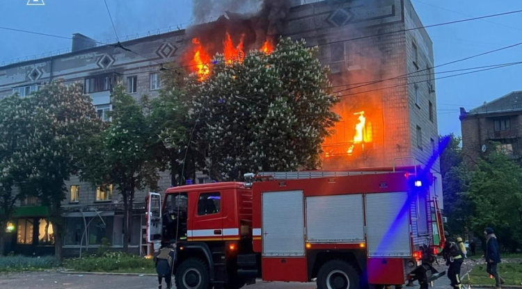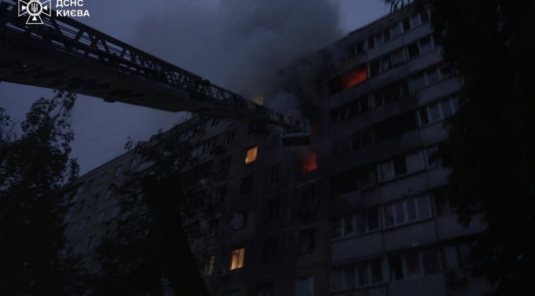 Svyatoşınskıy semtinde SİHA parçalarının 9 katlı bir apartmana isabet etmesi sonucu binanın 6, 7, 8 ve 9’uncu katlarındaki dairelerde yangın çıktı. 100 metrekarelik alana yayılan yangın kontrol altına alındı. Yangın sırasında biri yetişkin, 4’ü çocuk olmak üzere 5 kişi kurtarıldı. Ukrayna Acil Durumlar Servisi, 3 çocuğun yanıklarla hastaneye kaldırıldığını açıkladı.