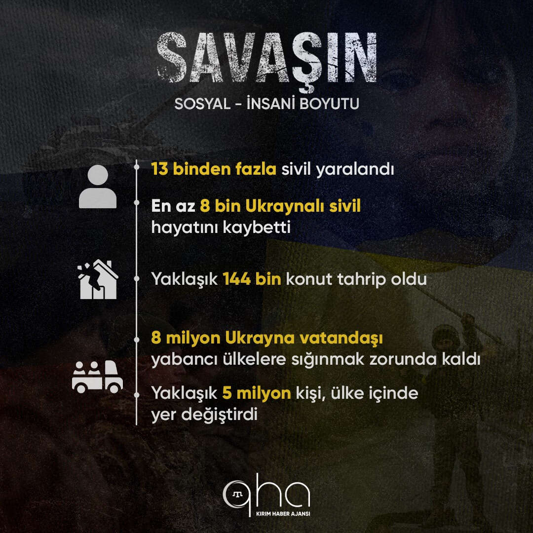 Ancak Rusya’nın işgali altında bulunan ve çatışmaların devam ettiği bölgelerde sayım yapılamadığı için gerçek rakamların belirlenenden kat kat fazla olduğu tahmin ediliyor.