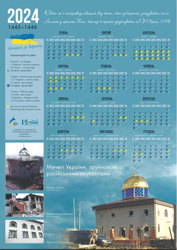 “Umma” (Ümmet) Ukrayna Müslümanları Dini İdaresi, her yıl yeni bir takvim tasarımı geliştiriyor. Takvimlerde yalnızca Müslümanlar için önemli günler olan bayramlar, Ramazan ayı ve etkinliklerinin tarihleri hakkında bilgi yer almıyor. Takvimde aynı zamanda Ukrayna'dan ve dünyadan İslâm hakkında bilgiler sunuyor ve cami fotoğrafları yer alıyor.