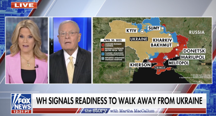 Amerika Birleşik Devletleri (ABD) Başkanı Donald Trump'ın Ukrayna ve Rusya Özel Temsilcisi Keith Kellogg, 30 Nisan 2025 tarihinde Fox News ile bir röportaj gerçekleştirdi. Kellogg, Beyaz Saray'ın daha önceki tehditlerine rağmen Ukrayna-Rusya Savaşı’nı sona erdirmeye yönelik barış çabalarından vazgeçmeyeceğini söyledi.