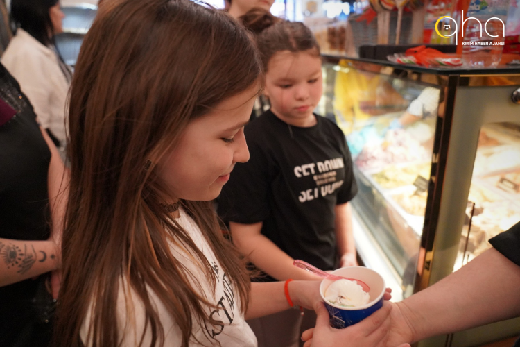 Alaçatı turunun ardından Ukraynalı çocuklar, İmren Pastanesi’nde dondurma yediler.