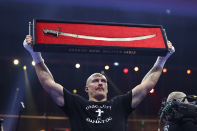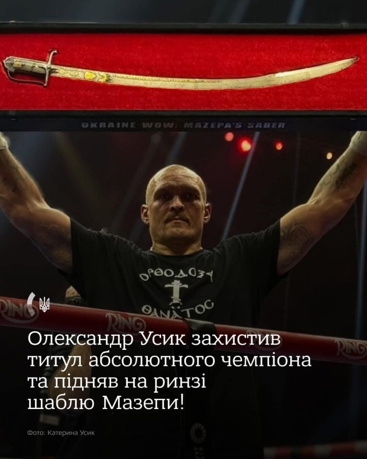 "Ukrayna tarihini aynı anda milyonlarca insan dünyada gördü. Galibiyet dolu maçtan sonra ağır sıklet boks dünya şampiyonu Oleksandr Usık, ringde Hetman İvan Mazepa’nın orijinal kılıcını kaldırdı.