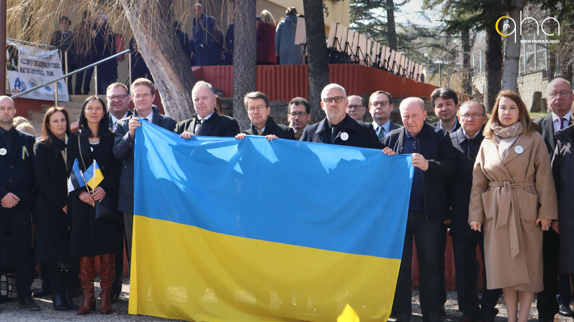 İşgalci Rusya'nın Ukrayna'nın ana karasına yönelik saldırılarının birinci yılı doldu. Ukrayna, toprak bütünlüğü ve tam bağımsızlığı için sivil ve altyapı tesislerini hedef alan Rus saldırılarını geri püskürtmeye devam ediyor. Bu kapsamda Ukrayna'nın Ankara Büyükelçiliği ve Kırım Türkleri Kültür ve Yardımlaşma Derneği ortaklığında bugün saat 09.45'te geniş çaplı savaşın birinci yıldönümüne ilişkin tören düzenlendi.