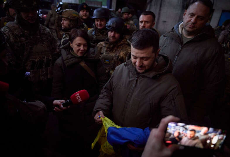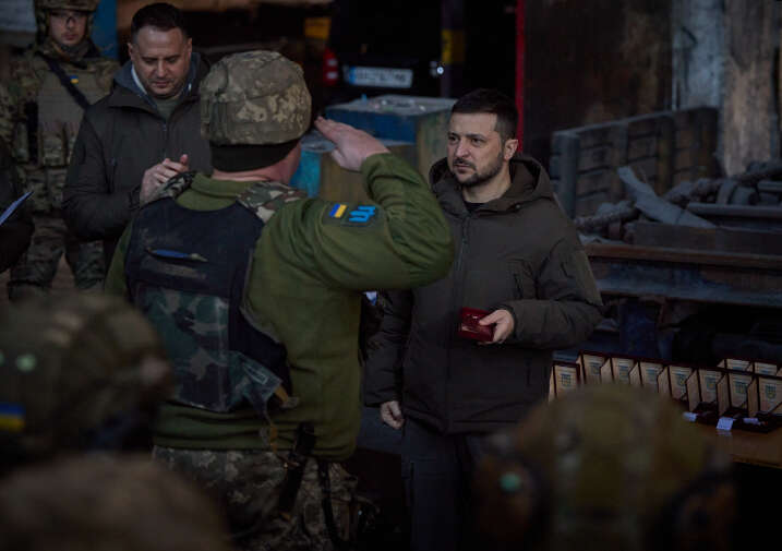 Ukrayna Cumhurbaşkanı Volodımır Zelenskıy, Rusya’nın Ukrayna’da başlattığı geniş çaplı işgal saldırısının son dönemlerdeki en sıcak noktalarından biri Donetsk bölgesindeki Bahmut kentine ziyaret gerçekleştirdi. Zelenskıy Bahmut’u savunan askerlerle bir araya geldi ve ödüllere layık görülen askerlere ödüllerini takdim etti.